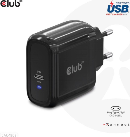 Travel Charger PPS 65W GAN technology, Single port USB Type-C, Power Delivery(PD) 3.0 Support Manufacturer Website: https://club-3d.com/en/detail/2594/travel_charger_pps_65w_gan_technology_single_port_usb_type_c_power_delivery(pd)_3.0_support/ | ||||||||||||||||||||||||||||||