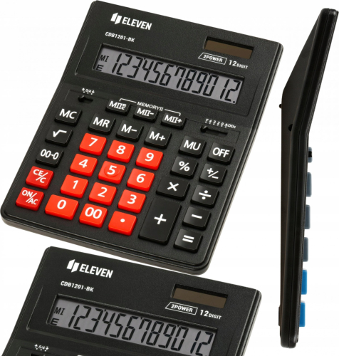 Kalkulator Eleven ELEVEN kalkulator biurowy czarny z czerwoną klawiaturą numeryczną CDB1201BK-RD