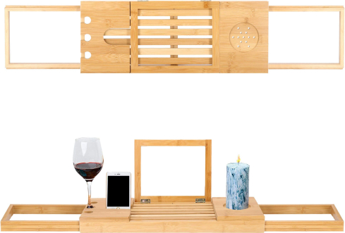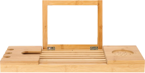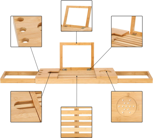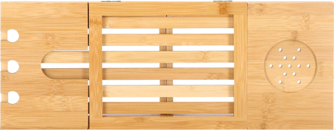 | Bambusa plaukta/vannas pārklājums garums: 50–93 cm platums: 19 cm biezums: 4,5 cm < / li> regulējams (plauktu var pagarināt ar regulējamiem spārniem, lai derētu daudzām vannām - regulējams no 50 cm līdz 93 cm) koka balsts planšetdatoram, grāmatai < li> vēdināma vieta piem. dvielim vai kosmētikai īpašs izgriezums / vīna glāzes turētājs trīs caurumi vīna vai šampanieša glāzes novietošanai ventilējams statīvs krūzei, krūzei, sveces lakota virsma lielākai ūdens un pelējuma izturībai materiāls: bambuss krāsa: dabīgs koks priekšrocības: stabila, funkcionāla , universāls izskats, estētisks dizains |