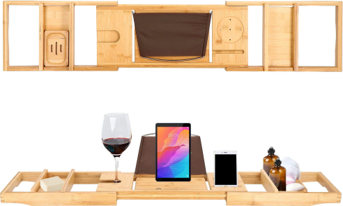 | Bambusa paliktnis - plaukts vannai ar turētāju glāzei, tālrunim, grāmatai, planšetdatoram vai iPad garums: 75-110,5 cm platums: 23 cm biezums: 4,5 regulējams (plauktu var pagarināt ar regulējamiem spārniem, lai tas atbilstu daudzām vannām - regulējams no 75 cm līdz 110,5 cm < li> trīs dažādi leņķi slīpums filmu skatīšanai vai lasīšanai divas noņemamas, pārvietojamas paplātes/konteineri kosmētikas piederumu, piemēram, dvieļu, šampūnu utt., uzglabāšanai. ventilējams krūzīšu paliktnis vai sveces ventilējams ziepju spilventiņš nerūsējošā tērauda rokturis kā atbalsts planšetdatoram, grāmatai un izturīgam dabīgam bambusam lakota virsma lielākai izturībai pret ūdeni un pelējumu materiāls: bambuss krāsa: dabīgs koks priekšrocības: stabils, funkcionāls, universāls izskats, estētisks dizains |