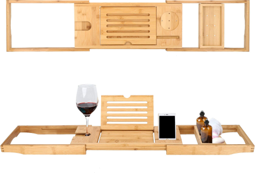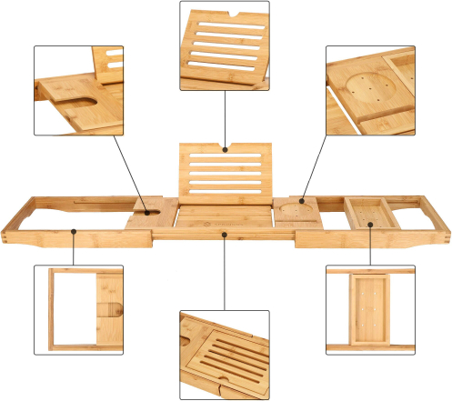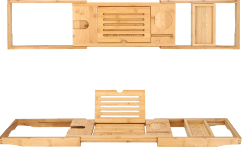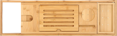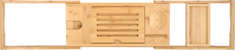 | Bambusa paliktnis - plaukts vannai ar turētāju glāzei, telefonam, grāmatai, planšetdatoram vai iPad garums: 75-110 cm platums: 23 cm biezums: 4,6 cm plauktu var pagarināt ar regulējamiem spārniem, lai tas atbilstu daudzām vannām - regulējams no 75 cm līdz 110 cm trīs dažādos leņķos filmu skatīšanai vai lasīšanai ventilējama, mobila, koka paplāte/konteiners kosmētikas piederumu, piemēram, dvieļa, šampūna utt., uzglabāšanai. ventilējama koka krūze vai sveču paliktnis īpašs izgriezums / stikla turētājs padziļinājums tālrunim koka balsts izgatavots no izturīga, dabīga bambusa planšetdatoram, grāmatai lakota virsma lielākai izturībai pret ūdens un pelējums materiāls: bambuss krāsa: dabīgs koks priekšrocības: stabils, funkcionāls, universāls izskats, estētisks dizains < / ul> |
