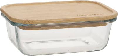 Bowl BOXY 14,5x10,5xH4,8cm 370ml, glass, bamboo