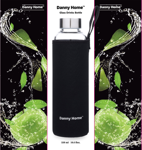 Drinking bottle GLASS H22,5cm 550ml glass, black case
