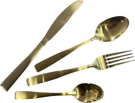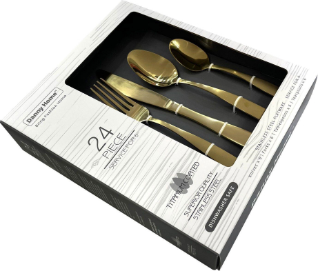 Galda piederumi DUNE 24-daļ., metāla, zeltaini. 6 naži, 6 dakšiņas, 6 zupas karotes, 6 deserta karotes. | ||||||||