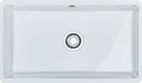 FRANKE izlietne Mythos KubusX, bļodas veids bez noteces, izgatavota no keramiskas spīdīgas virsmas, ar vienu bļodu, krāsa balta. Ārējie izmēri: 745 mm (no labās uz kreiso) x 454 mm (no priekšas uz aizmuguri), bļodas izmēri: 705 mm x 400 mm, dziļums 190 mm. Uzstādāma zem virsmas (undermount), minimālais skapja platums 80 cm, noteces izvads 3 1/2", bez noteces virsmas, nav abpusēji montējama, maisītāja vieta izlietnē nav paredzēta, komplektā iekļauts manuālais ventilis, sifons nav iekļauts, nav caurumu maisītājam un ziepju dozatoram, saderīga ar Active Twist sistēmu, uzstādīšanai paredzēts skavu komplekts. | ||