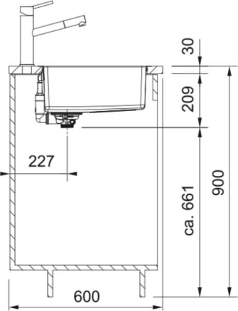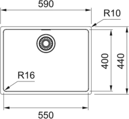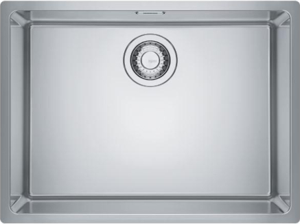 Franke nerūsējošā tērauda iegriežamā virtuves izlietne ar taisnstūra formu ir aprīkota ar vienu bļodu un paredzēta uzstādīšanai 60 cm platā skapītī. Izlietnei ir nerūsējošā tērauda krāsa, 3½ collu ventilis ar ar roku regulējamu sietiņgrozu, un ventilis ir iekļauts komplektā. Kopējie izlietnes ārējie izmēri ir 59 × 44 cm, bļodas izmērs ir 55 × 40 × 20,9 cm, savukārt izgriezuma izmēri montāžai ir 55 × 40 cm ar 16 mm rādiusu. Produkta EAN kods ir 7612985575126. |