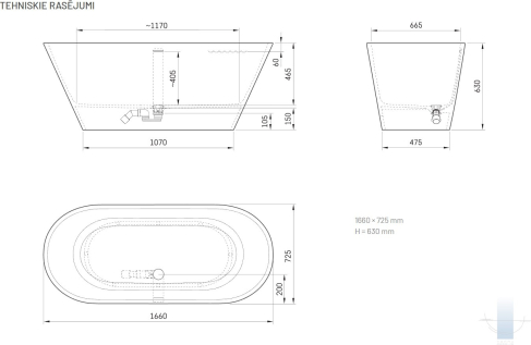 • Izmērs: 1660 x 725 mm, h = 630 mm