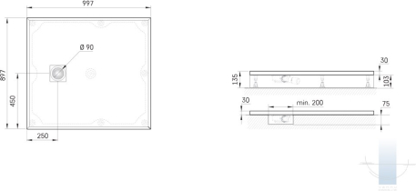 • Izmērs; 900 x 1000 mm, h = 130 mm