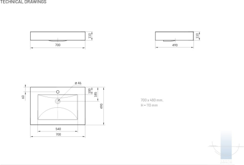 • Izmērs: 700 x 490 mm, augstums = 110 mm