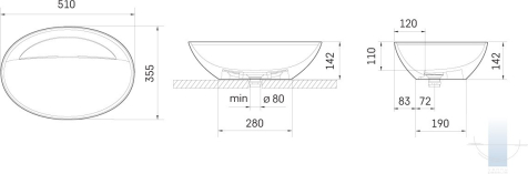 Apraksts:Skulpturāli smalka. Neliela. Uz virsmas novietojama izlietne. Inovatīva, skatienam slēpta noplūde