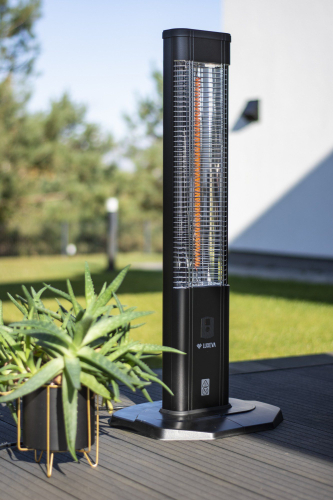 Stilīga dizaina infrasarkanais sildītājs ar oglekļa šķiedras sildelementu ir lieliski piemērots izmantošanai āra terasēs vai iekštelpās. Iebūvētais termostats uzturēs vēlamo temperatūru. Sildītājam ir 3 dažādi jaudas līmeņi, kurus var regulēt ar tālvadības pulti.