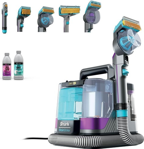 Augstspiediena smidzinātājs dziļi attīra šķiedras, pēc tam Shark jaudīgā sūkšanas jauda izvada netīrumus, netīrumus, matus un kažoku un šķidrumu ātrai žāvēšanai. Pret aizsērēšanu sūkšanas sistēma ļauj matiem brīvi iekļūt netīrā ūdens tvertnē. Lieliski piemērots paklāju un grīdsegu, mājdzīvnieku gultu, kāpņu, automašīnas un jūsu mājdzīvnieka iecienītākās vietas uz dīvāna tīrīšanai.