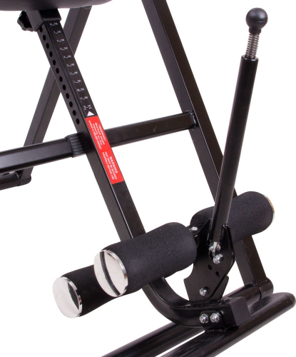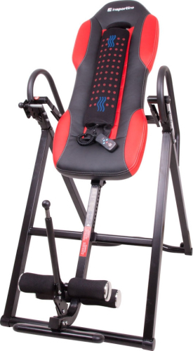The heated inversion Table inSPORTline Inverso Heaty was developed to either prevent or relieve back pain. Whether you sit or stand all day, the long term exertion of only one half of your body is typical of modern lifestyle. The result of this lifestyle is gradual overworking of particular parts of your body. This can later cause damage. Overexertion is the most common in intervertebral discs, hip joints, internal organs or the circulation of your lower limbs. These issues can be remedied in the most natural way, which is inverting your body position. The inversion table can smoothly turn your body so that you lie upside down. This position results in the tension in your muscles actively loosening and positively influences your whole body structure. If you use the inversion table regularly, you will unblock your back and also your respiratory system. The heated inversion Table inSPORTline Inverso Heaty has a heating and vibrating belt, which you can secure just over your spine. The vibrations and higher temperature help with the circulation in the back muscles and make the whole process even more effective. The vibration belt has three settings – you can choose from constant vibrations or alternating vibrations either in the centre of the belt or at both ends of it. You can also turn off the heating and use only the vibration function. The vibrations can be set for 5 or 10 minutes. You can also remove the belt completely and use the inversion table by itself. The frame of the Inversion Table inSPORTline Inverso Heaty is made of durable steel material. The frame, along with the soft padding offer maximum comfort during exercising. The weight limit is 150 kg. Another advantage of this table is an adjustable foot bar and the table’s folding mechanism (similar to ladder). Technical specifications: