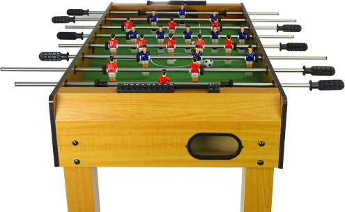 The table football game is packed in a large cardboard box. The foosball table has been made of certified materials and it complies with the applicable standard EN71.