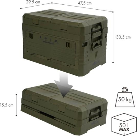 | NCB4003 saliekamā ceļojumu kaste – maksimāla organizācija un funkcionalitāte Lielāka ietilpība un ērta uzglabāšana NCB4003 ir daudzpusīga ceļojumu kaste , kas apvieno lielu ietilpību, kompaktu dizainu un papildu organizatoriskās funkcijas . Pateicoties 50 litru izmantojamajai telpai, tas ir lieliski piemērots lietošanai mājās, garāžā, automašīnā, kā arī ceļojumā vai kempingā . Iespēja salocīt kastīti tikai 15,5 cm augstumā atvieglo tās uzglabāšanu un transportēšanu. Divi papildu konteineri atlokā – vēl labāka organizācija Unikāla NCB4003 īpašība ir divi praktiski konteineri, kas ievietoti atlokā , kas ļauj vēl labāk organizēt uzglabātos priekšmetus. Tā ir ideāla vieta nelieliem piederumiem, instrumentiem, kabeļiem, atslēgām vai pirmās nepieciešamības precēm , kas vienmēr ir pa rokai. Tas padara NCB4003 modeli ārkārtīgi funkcionālu gan ikdienā, gan ceļojot . Moduļu dizains – elastīga pielāgošana jūsu vajadzībām NCB4003 ir izstrādāts, domājot par modulāru izmantošanu – tā forma un konstrukcija ļauj stabili sakraut vairākas kastes vienu virs otras. Tas ļauj efektīvi organizēt vietu gan garāžā, gan automašīnas bagāžniekā, gan kempingā. Kastu sakraušana palielina uzglabāšanas ietilpību, neaizņemot papildu vietu, un cietā konstrukcija nodrošina stabilitāti pat ar lielāku slodzi. 50 litru tilpums – optimāla vieta visam nepieciešamajam Kaste NCB4003 piedāvā 50 litrus vietas , kas ļauj ērti uzglabāt dažādus priekšmetus, piemēram , apģērbu, sporta aprīkojumu, instrumentus, ceļojumu vai automašīnu piederumus . Tas lieliski darbosies gan automašīnas bagāžniekā , gan garāžā kā organizators , gan mājās kā funkcionāla vieta dažādu aksesuāru glabāšanai . Cieta konstrukcija – izturība gadiem Izgatavota no augstas kvalitātes polipropilēna (PP), kaste ir izturīga pret mehāniskiem bojājumiem, mitrumu un mainīgiem laikapstākļiem . Pateicoties tā stabilajām sienām un pastiprinātajai konstrukcijai, tajā var uzglabāt smagākus priekšmetus, neuztraucoties par to drošību. Daudzpusīgas lietojumprogrammas Pateicoties tās daudzpusībai un funkcionalitātei , NCB4003 būs noderīgs daudzās situācijās: Kempings un ceļojumi — lieliski piemērots kempinga piederumu, apģērbu un pārtikas glabāšanai, ar vieglu piekļuvi maziem piederumiem atlokā. Automašīna un transports – lieliski piemērots bagāžnieka sakārtošanai, instrumentu un svarīgāko auto piederumu pārnēsāšanai. Māja un dzīvoklis – ideāli piemērota rotaļlietu, dokumentu, sezonas apģērbu un citu lietu glabāšanai. Garāža un darbnīca – labi darbojas kā instrumentu, kabeļu un auto kopšanas piederumu organizators. Ergonomika un lietošanas komforts Vieglais dizains un tikai 2,1 kg svars padara kasti viegli pārnēsājamu un transportējamu. Ergonomiski rokturi nodrošina ērtu satvērienu, un stabilā konstrukcija nodrošina drošu satura uzglabāšanu. Specifikācija: Materiāls: polipropilēns (PP) Izmēri atlocītā stāvoklī: 47,5 x 29,5 x 30,5 cm Izmēri salocītā stāvoklī: 47,5 x 29,5 x 15,5 cm Tilpums: 50L Svars: 2,1 kg Maksimālā slodze: 50 kg |