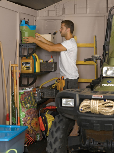 Ietilpīgais Factor 8x8 dārza šķūnis der ne tikai dārzkopības piederumiem, bet arī mazākām atpūtas iekārtām, kā arī mājsaimniecībai svarīgiem instrumentiem un priekšmetiem. Produkts ir izgatavots no augstas kvalitātes plastmasas materiāliem, tāpēc tas neprasa apkopi, nerūsē, nav pakļauts pārklājuma vai materiāla sabojāšanās procesiem. Tērauda stiprinājuma rāmis garantē stabilitāti un lietošanas drošību. Virsmas tekstūra, kas imitē dabisko koksni, moderns dizains un stilīgs logs ir produkta papildu estētiskās īpašības. Piemērots visiem laika apstākļiem, izturīgs pret rūsu, lobīšanos, puvi vai trūdēšanu. Ventilācija nodrošina patīkamu vidi, kamēr logs un jumta kore ar caurspīdīgu plastikātu nodrošina dabisku gaismu. Dubultās durvis un pamatīgā grīda ļauj ērti uzglabāt un piekļūt pat smagiem un lieliem priekšmetiem. Viegli montējams, izmantojot tikai mājsaimniecības instrumentus. Lieliska koka struktūras imitācija un izturīga konstrukcija ar tērauda stiprinājumu. Factor 6x6 ir izturīga glabātuve, kas nodrošina daudz vietas uzglabāšanai un ir aprīkots ar grīdas paneli, platām dubultdurvīm, iebūvētu ventilāciju, logu un jumta logu, kas nodrošina daudz dabiskās gaismas. Tajā ir arī divi plaukti.