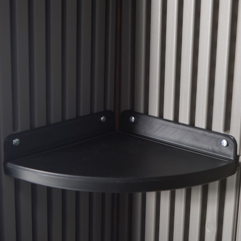 Plaukti: Divi stūra plaukti - rādiuss 24 cm + viens plaukts 76 x 25 cm