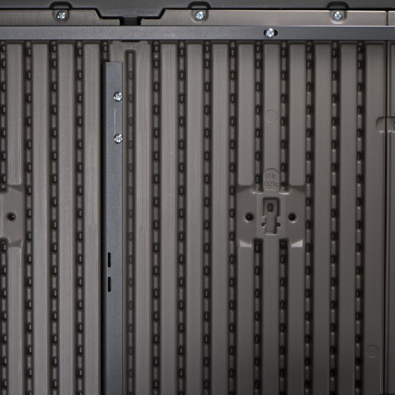 KOKSNES TEKSTŪRA - Perfekta koka imitācija ļauj šķūnītim labi saskaņot ar dārza apkārtni, vienlaikus neprasot krāsošanu vai kopšanu.