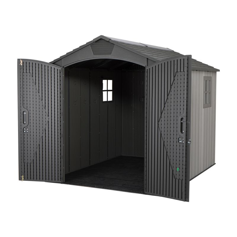 ASV zīmola Lifetime ražotā dārza nojume ar izmēriem 289 x 213 cm ir inovatīvs produkts, kas izgatavots no augstas kvalitātes plastmasas - 100% augsta blīvuma polietilēna (HDPE). Tērauda pastiprinātā konstrukcija padara šķūni daudz izturīgāku un kalpos gadiem ilgi. Tas ir izveidots tā, lai tajā būtu viss, ko vēlaties paslēpt no sava dārza.