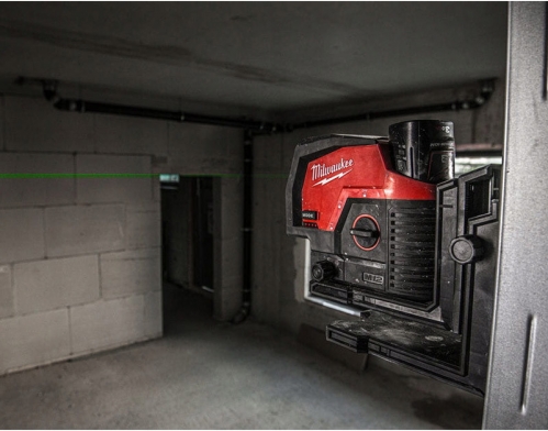 M12™ cross line laser with plumb points with horizontal/vertical line and plumb transfer points. High intensity green beams provide a range of 38/100 m with/without detector. All-day run time of 15+ hours with an M12™ 3.0Ah battery. Manual Mode for use any angle, Self-Levelling Mode with out-of-level indication and 4° self-levelling range. Integrated magnetic bracket , 1/4˝ and 5/8˝ tripod thread and hang hole - allows attachment to steel stud, wooden stud and tripod. The bracket also provides 360° rotation pivots on plumb point with fine adjust. IP 54 and 1 m drop rating. Supplied with hi-vis target plate and track clip, without batteries and charger in a kitbox.
