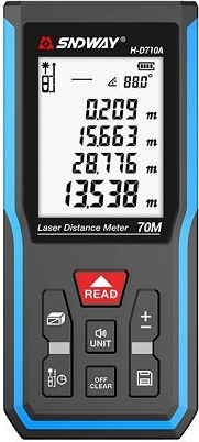 | Laser distance meter, 70m Features: A laser distance meter is a widely used tool in construction, home and household that indirectly measures distances and performs calculations (addition and subtraction of measured values, full mode Pythagorean measurement function). Purpose: to measure the perimeters, areas, volumes of a room or object. Continuous measurement function: The laser is switched on continuously and the device measures the distance to the point to which the laser is directed. The bright (Class 2) laser point of the meter will be easily noticeable in both light and dark hours of the day, making it easy to measure the required data. LCD display, remaining battery indication. Capable of storing up to 99 sets of data so you don't have to worry if you need complex measurements. Compact shape, easy to use, durable body. The body is manufactured using a single molding technique so it is durable and waterproof. Uses a rechargeable battery so the meter body doesn't need to be reopened. Warning: laser radiation - avoid direct eye exposure. Functions: High capacity storage. Non removable lithium battery. Large numbers. Clear illuminated display. Distance / area / volume measurement. Measurement according to the Pythagorean distance formula. Addition / subtraction calculations. Single / continuous measurement. Units switch m / ft / in. Vertical / horizontal measurement. Benchmark selectable. Max/Min distance tracking (display value). Buttons/keys sound. Specifications: Max. measuring distance: 70m. Measurement accuracy +/- 2mm. Laser class: II, 630-670nm, <1mW. Angle range: +/- 90°. Battery: rechargeable lithium battery 3.7V 850mAh. Data storage: 99 units. Protection class: IP54. Operating temperature: 0°C ~ + 40°C. Storage temperature: -20°C ~ +60°C. Automatic laser off: 20s. Automatic device switch-off: 150s. Self-calibration: yes. Size: 112x50x25mm. Weight: 100g. The set includes: lazer distance meter, non-removable lithium battery, USB Type-A to USB Type-C charging cable, hand strap, portable bag, attached to the belt, reflector, user manual. Warranty: 24 months. ![]() ![]() |