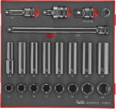 Tengtools Uzgriežņu galviņu komplekts Teng Tools TED 9121; EVA; 21 gab.