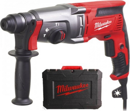 26 mm 3-mode SDS-plus hammer with 800W motor for drilling applications in masonry and concrete. 2,4 J of impact energy. Optimised for drilling 6 - 16mm. No load speed 1500 rpm and 4500 bpm. Safety clutch protects user if drill bit jams. Drilling capacity in concrete/steel/wood: 26/13/30mm. Weight 2,4 kg. Supplied with 4 m cable and kitbox.