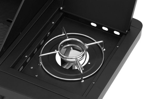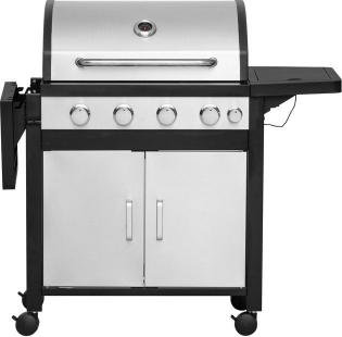 Gāzes grils ar četriem degļiem un sānu degli. Četri nerūsējošā tērauda cauruļu degļi 3,2 kW un sānu deglis 3,2 kW. Kopējā jauda – 16,0 kW. Grilēšanas zona – 63 x 39 cm. 2 matēti čuguna grila režģi 21 x 38 cm. 1 matēta čuguna grila panna 21 x 38 cm. Sildīšanas režģis no emaljēta tērauda stieplēm – 60 x 12 cm. Katrā vadības slēdzī iebūvēta pjezo aizdedze. Dubultais vāks no nerūsējošā tērauda SS430. Termometrs uz vāka. Kurtuves un grila ratiņi no pulverkrāsota tērauda. Ratiņu durvis un vadības panelis no nerūsējošā tērauda SS430. 4 siltuma sadales plāksnes no aluminizēta tērauda. Cinkota tauku paplāte. Pulverkrāsoti sānu paneļi, no kuriem vienu var nolaist. 4 mazi bloķējami riteņi. Piemērots aizsargpārklājs 602300. Garantija – 2 gadi.