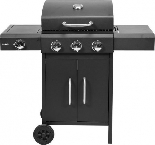3 + 1 gāzes grils aprīkots ar biezu, hromētu režģi . Sānu plaukti un ietilpīgs, slēdzams skapis ļauj ērti uzglabāt garšvielas un nepieciešamos piederumus. 3,2 kW sānu deglis ļauj pagatavot un sildīt ēdienu katlā vai pannā.