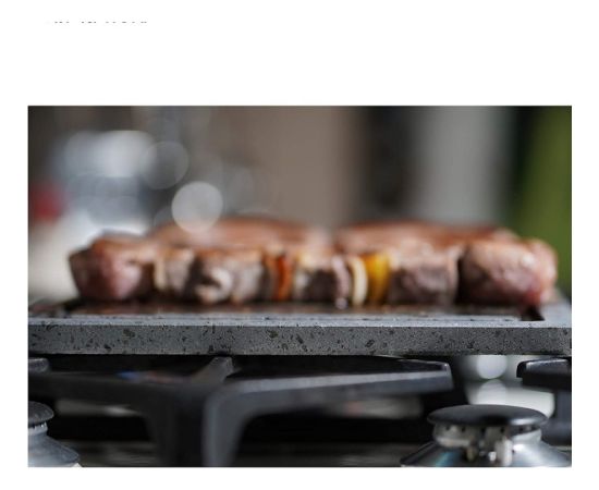 | Lavas akmens ir neaizstājams palīgs, gatavojot uz plīts, cepeškrāsnī, uz grila vai vienkārši virs karstām oglēm! Tas gatavojas vienmērīgi, nesadalās, nesvīst un paliek sulīgs un garšīgs. Tāpat kā čuguns, lavas akmens vienmērīgi sadala siltumu un ilgi to saglabā. Uz lavas akmens var gatavot gaļu, zivis, picas, jūras veltes, dārzeņus, desas, pat burgerus un olas.Izmēri:Izmērs: 30x50 cmKāju augstums: 10 cm |