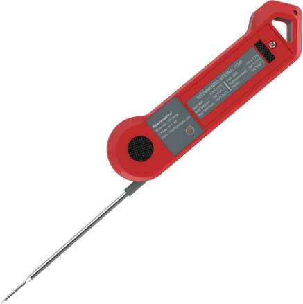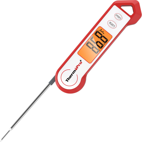 | Gatavojiet gaļu precīzi ar ThermoPro TP19HW! Šis kvalitatīvais digitālais termometrs katru reizi sniegs precīzus temperatūras rādījumus 3-4 sekunžu laikā. Termometrs ir salokāms, tam ir magnētiska aizmugure un āķis, tāpēc to var piekarināt pie grila vai virtuves skapīša. TP19HW ir lieliska izvēle gan pieredzējušiem, gan iesācējiem maizniekiem.- Izturīgs:jums nebūs jāuztraucas par termometra samirķēšanu vai atstāšanu lietū. TP19HW ir 100 % ūdensizturīgs, un to var mazgāt zem tekoša ūdens.- Ātrums:šim tūlītējas nolasīšanas termometram ir nerūsējošā tērauda zonde un augstas kvalitātes sensors, kas tikai 3 līdz 4 sekunžu laikā sniegs precīzu informāciju par ēdiena temperatūru.- Precizitāte: termometram ir liels temperatūras mērīšanas diapazons (-50° ~ 300° C ). -Kalibrēšana: termometra kalibrēšanas režīms ļaus jums koriģēt sensora rādījumus, ja tas būs nepieciešams pēc ilgstošas lietošanas.- Automātiski rotējošs LCD displejs ar apgaismojumu: kad termometrs ir apgriezts, displejs automātiski pagriežas par 180 grādiem, un apgaismojums palīdzēs jums nolasīt rādījumus tumsā vai krēslā.- Gudrs un ērts: pēc 90 sekundēm termometrs ir gatavs lietošanai. Pēc 90 sekunžubezdarbības termometrs pāriet miega režīmā un ieslēdzas, tiklīdz to paņemat rokās.Funkcijas. Mērīšanas laiks○ Temperatūras diapazons: no -50 līdz 300°C ○ Precizitāte: ± 0,5°C ○ Automātisks miega režīms○ Rotējošs displejs |