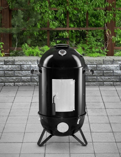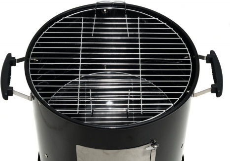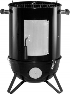Kūpinātava, kas darbojas ar kokoglēm vai briketēm. Divi hromēti no stiepļu tērauda izgatavoti grilēšanas/kūpināšanas režģi. Vienam no tiem ir rokturi, kas atvieglo tā izņemšanu no kūpinātavas iekšpuses. Režģu diametrs ir 2 x 45 cm. Režģu biezums – 3 mm. Kūpinātavas vāks un pamatne ir izgatavoti no emaljēta tērauda. Centrālā daļa ir tērauda ar pulverkrāsas pārklājumu. Centrālajā daļā atsevišķa nerūsējošā tērauda lūka, caur kuru režģim var pievienot ogles/briketes un kūpināšanas skaidas. Caur to arī papildina šķidruma tvertni ar šķidrumu. Apakšējā daļā atrodas atsevišķa emaljēta pelnu tvertne ar emaljētu stiepļu tērauda ogļu režģi. Pelnu traukā ir lieli caurumi, caur kuriem gaiss tiek novadīts uz oglēm. Trīs ventilācijas apakšējā daļā. Vākam ir gaisa vārsts vilkmes regulēšanai. Uz vāka ir atsevišķi āķi lielu zivju vai gaļas gabalu pakāršanai kūpinātavā. Uz vāka ir termometrs temperatūras uzraudzīšanai kūpinātavas iekšpusē. Atsevišķa emaljēta šķidruma tvertne, kas kūpināšanas laikā palīdz saglabāt mitrumu kūpinātavā. Trīs izturīgas kājas un rokturi ērtai transportēšanai Piemērots aizsargpārklājs 250968. Garantija – 1 gads. Tehniskās specifikācijas |