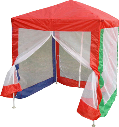 | Dārza nojume ar pretisnsektu tīkla sieniņām un rāvēlslēdzēja aizdari. Nojumes rāmis izgatavots no tērauda caurulēm ar diametriem 13 / 16 / 19 mm, pārsegs no 170T poliestera. Nojumes garums un platums 1.2 m, augstums 1.65 m. |