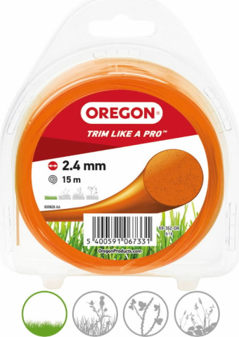 Trimmera aukla, apaļa, oranža, 2,4 mm, 15 m, OREGON