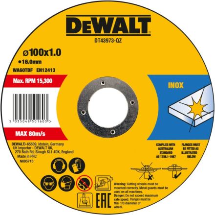 Abrazīvais griešanas disks DeWalt DT43973-QZ; 100x16x1,2 mm; 10 gab.