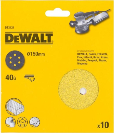 Smilšpapīrs DeWalt DT3121-QZ; 150 mm; K40; 10 gab.