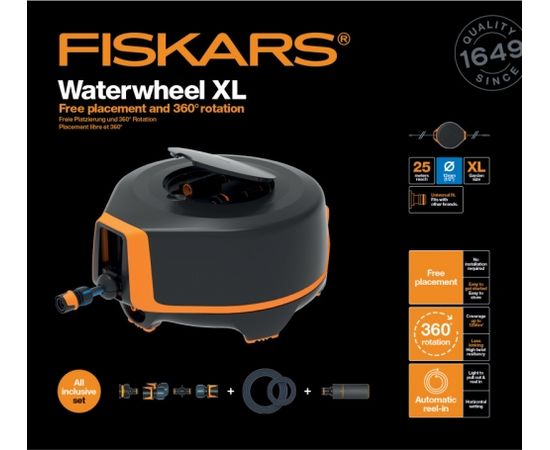 Fiskars Automatic XL 25m Laistīšanas spole ar šļūteni