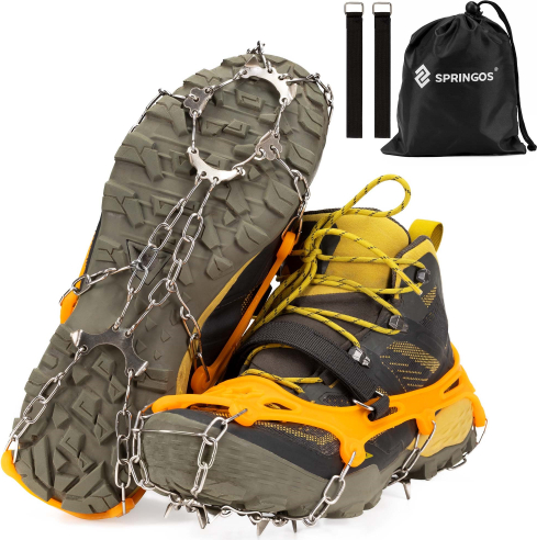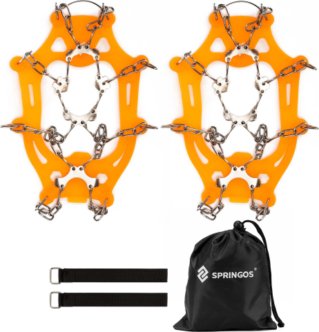 | Springos CS0168 ir apavu radzes, kas nodrošina labāku saķeri uz slideniem ceļiem, piemēram, uz ledus un sniega. Piemērotas ziemas pastaigām, pārgājieniem, skriešanai un darba aktivitātēm āra apstākļos, nodrošinot stabilitāti un drošību.