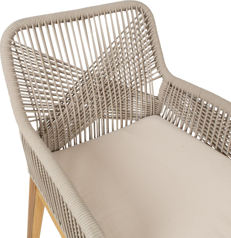 Sēdekļa rāmis ir izgatavots no cinkotas tērauda caurules un pārklāts ar elegantu virvju pinumu.