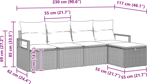 5-elementowy zestaw sof ogrodowych vidaXL z poduszkami, czarny polirattan
