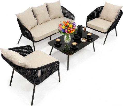 1 × kafijas galdiņš ar melnu rūdītu stiklu