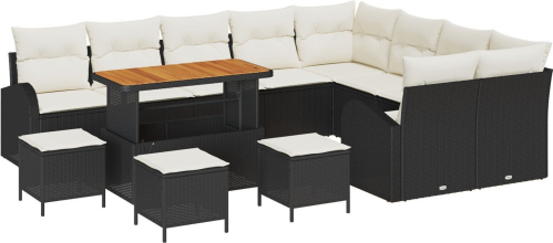 Vidaxl 12-elementowy zestaw kanap ogrodowych z poduszkami czarny polirattan akacja, 2-osobowa kanapa ogrodowa z pojemnikiem i poduszkami czarny polirattan, 3-elementowy zestaw do jedzenia w ogrodzie z poduszkami czarny polirattan akacja