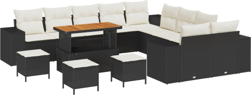 Vidaxl 14-elementowy zestaw sof ogrodowych z poduszkami Czarny Polirattan Akacja