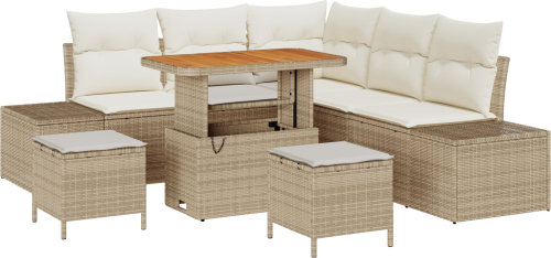 vidaXL 8 Elementowy Zestaw Sof Ogrodowych z Poduszkami Beżowy Polirattan Akacja