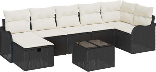 vidaXL 8-elementowy zestaw sof ogrodowych z poduszkami czarny polirattan