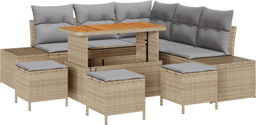 Vidaxl Zestaw 9-elementowy sof ogrodowych z poduszkami Beżowy Polirattan Akacja