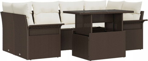 vidaXL Zestaw Sof 7-częściowy z Poduszkami Brązowy Polirattan