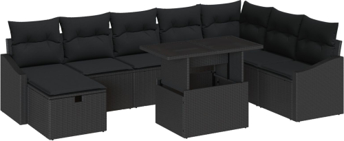 vidaXL Zestaw Sof Kątowych 9 Części z Poduszkami Czarny Rattan PE