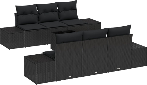 vidaXL Zestaw Sof na Ogród 7-elementowy Czarny Rattan, Poliester