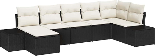 vidaXL Zestaw Sof na Ogród z poduszką 7 pcs Czarny Rattan PE